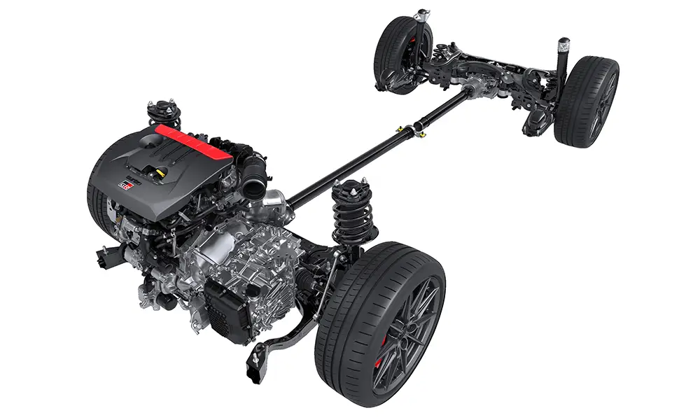 GRヤリスのパワフルな魅力をより多くの人が楽しめるように、MT同等のレーシングな走りを目指した新開発8速AT。シフト操作に捉われることなくドライビングに集中できることで、一般道での軽快な走りはもとより、スポーツ走行をもっと楽しみたい方や、サーキット等でのタイムアップを追求する方まで、すべてのドライバーにドライビングプレジャーを提供する。