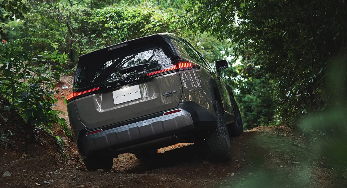 ●リヤバンパー(ブラック) ●リヤサイドスポイラー(ブラック) ●Adventure専用大型リヤスキッドプレート(シルバー塗装) ●リヤスポイラー ●Adventure専用グレードマーク(リヤ/マットブラック) ●ハイブリッドシンボルマーク(ブラック) ●アルミルーフレール