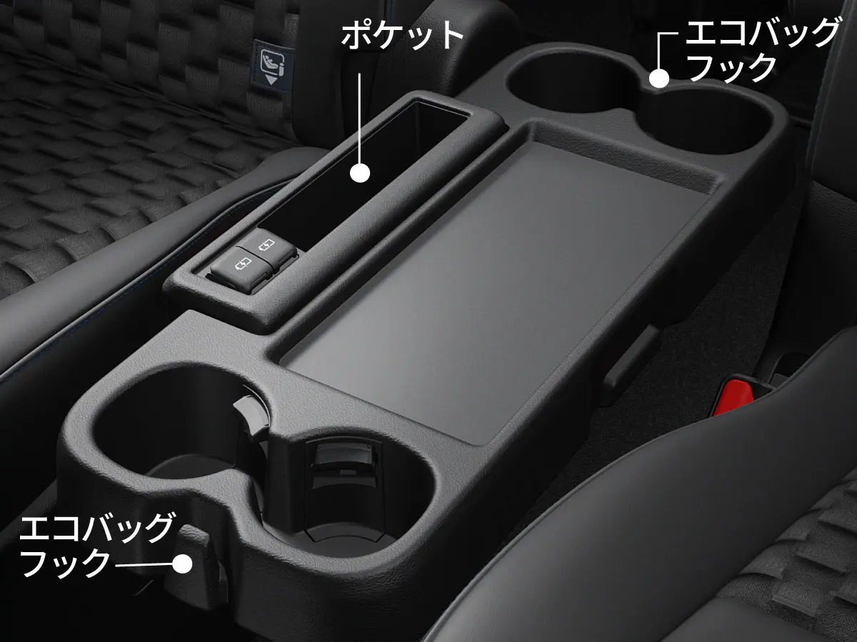 格納式センターボックス(カップホルダー2個+オープンボックス+エコバッグフック付)