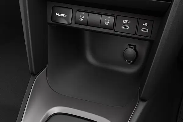 〈左〉HDMI入力端子 〈中央〉充電用USB端子(Type-C) 〈右〉USB入力(動画・音楽再生/給電[Type-C])