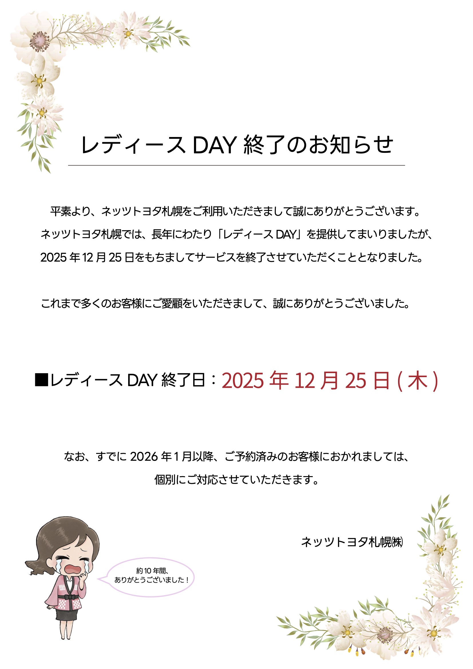 毎週木曜日は、女性に嬉しい特典がいっぱい!