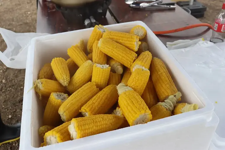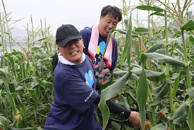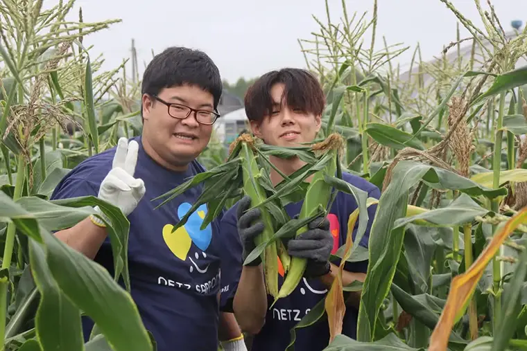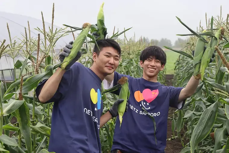 「米米club」から派生した「とうきびランド」では、社員のご実家の畑をお借りしてトウモロコシの種植えと収穫も。収穫したトウモロコシはその場で茹で、お客様と社員に振る舞うイベントも開催していて大変好評です。