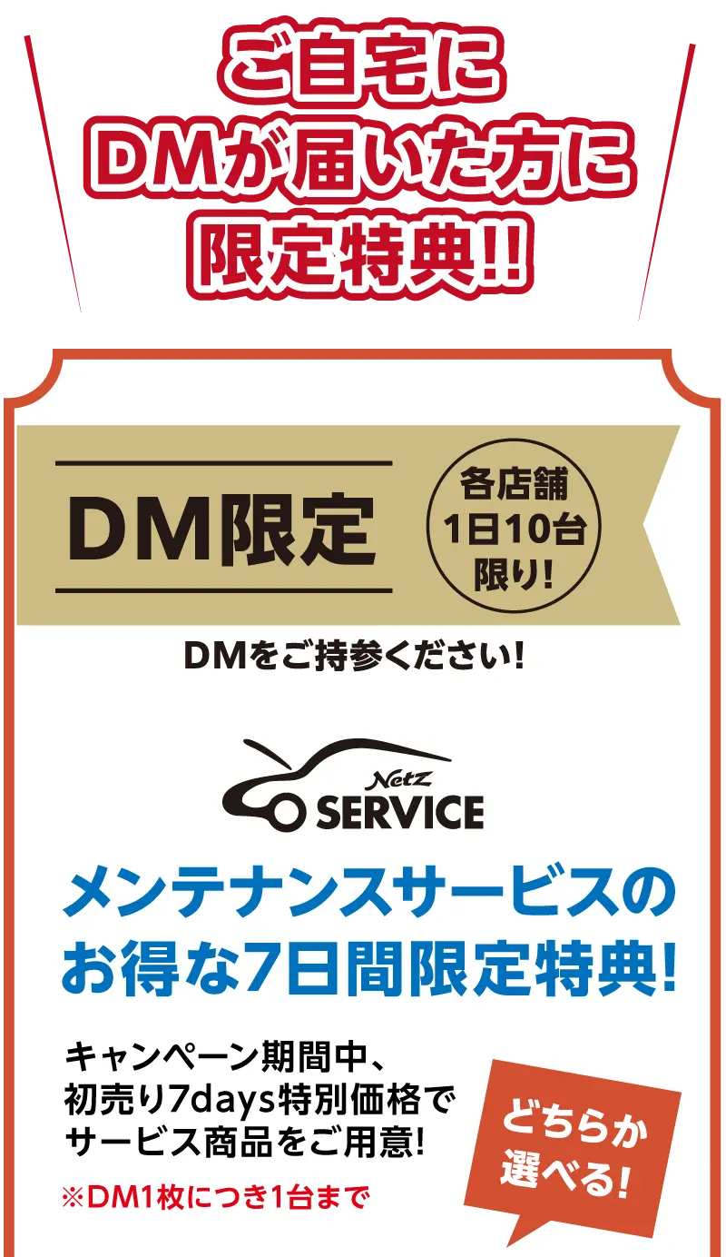 1月10日(土)・11日(日)・14日(水)・15日(木)・16日(金)・17日(土)・18日(日)の7日間、ネッツトヨタ札幌の全店で『新春初売7days』を開催いたします。 期間中は、豪華ご成約特典やご来店アンケート特典、メンテナンスサービスの限定特典などをご用意して皆様をお待ちしております。 中古車7daysのチラシもご覧ください おもて面[PDF:4.6MB] うら面[PDF:2.0MB] お得な新春初売7日間!!この機会をぜひお見逃しなく!お近くのネッツトヨタ札幌でお待ちしております! 店舗情報はこちら