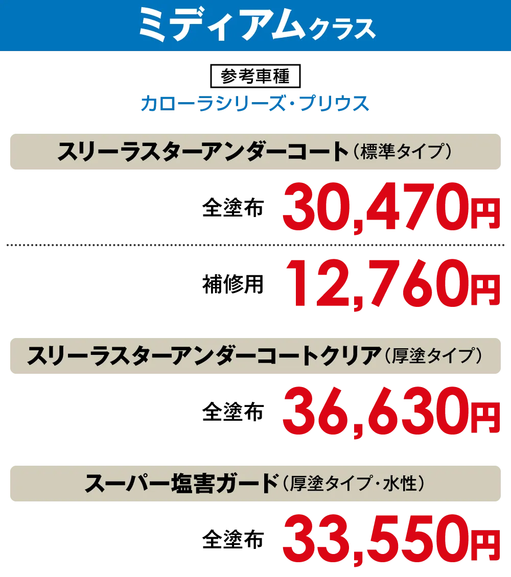 ■料金には下廻り洗浄代と材料代を含んでいます。