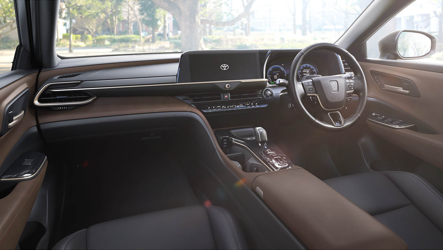 CROSSOVER Z(2.5Lハイブリッド車)。ボディカラーのプレシャスブロンズ〈4Y6〉はメーカーオプション。内装色のブラック/サドルタンは設定色(ご注文時に指定が必要です。指定がない場合はブラックになります)。