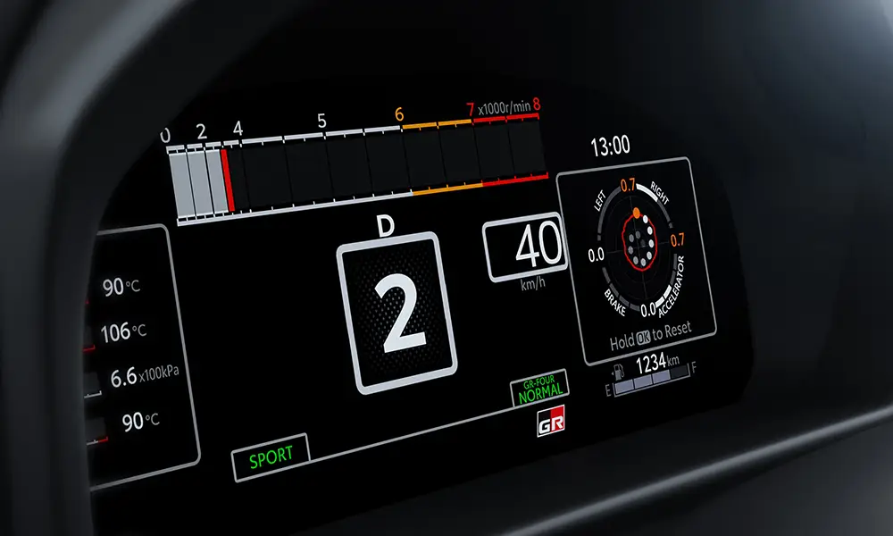 GRヤリスのパワフルな魅力をより多くの人が楽しめるように、MT同等のレーシングな走りを目指した新開発8速AT。シフト操作に捉われることなくドライビングに集中できることで、一般道での軽快な走りはもとより、スポーツ走行をもっと楽しみたい方や、サーキット等でのタイムアップを追求する方まで、すべてのドライバーにドライビングプレジャーを提供する。