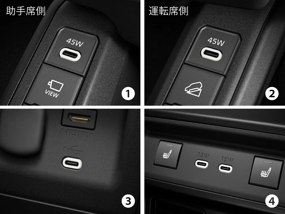 *PD対応は45Wのみです。45W:Zのフロント2個/15W:Adventureのフロント2個。全車のリヤ2個。
