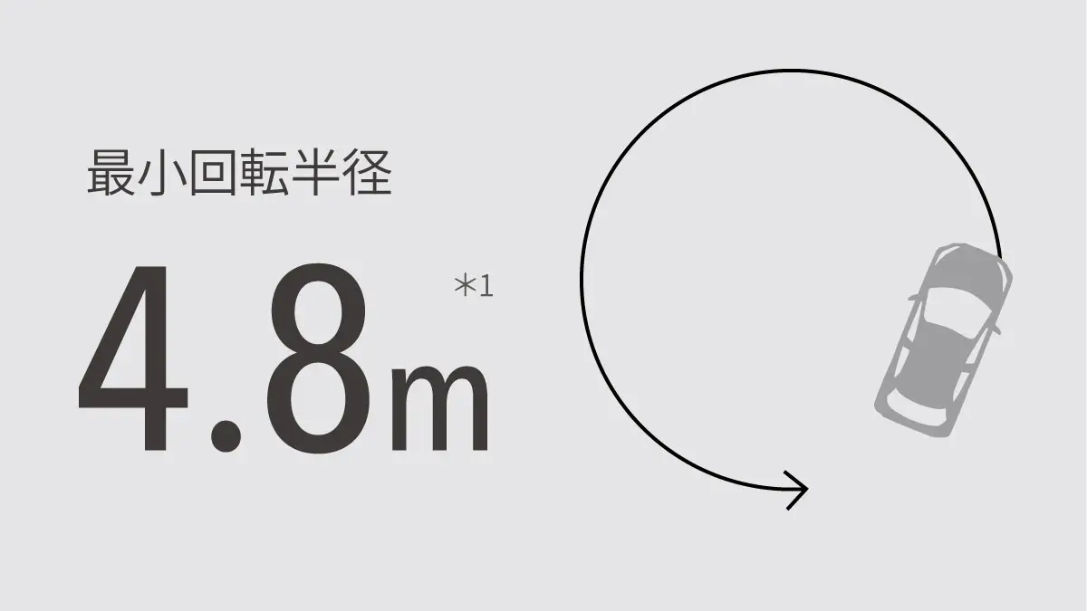 *. 14インチタイヤ装着車(Uを除く2WD車)の場合。U、15インチタイヤまたは16インチタイヤ装着車およびE-Four車の場合は、5.1m。