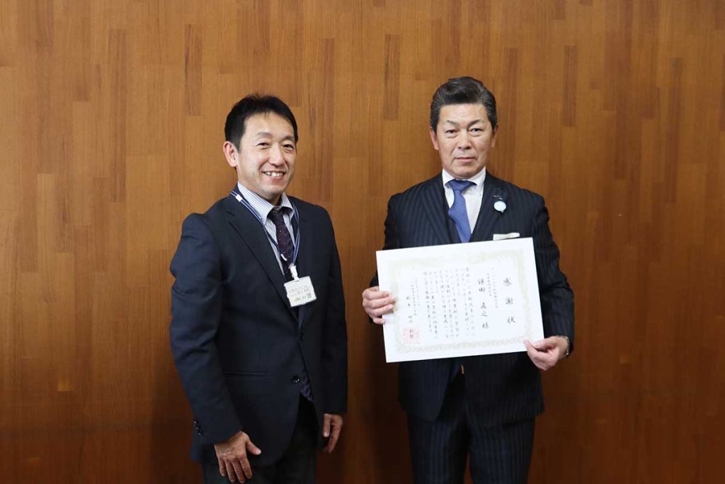 寄贈の式典にはレバンガ北海道の折茂社長にも参加いただきました。