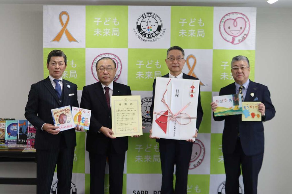 「秋の大収穫祭」、「パンマルシェ」での売上金52万円分の絵本を購入し、札幌市子ども未来局へ寄贈いたしました。