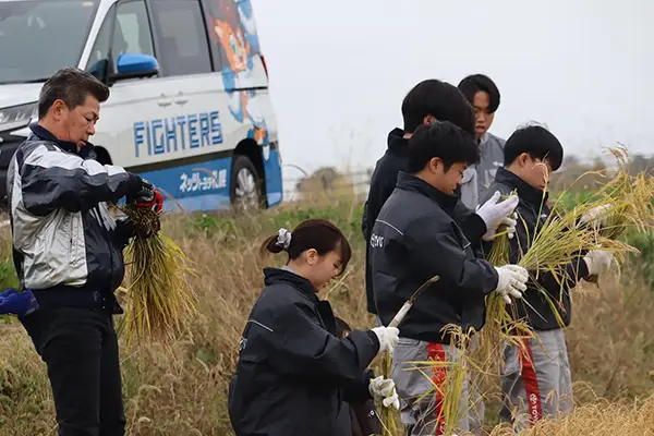2023年から続いている「米米club」では、毎年恵庭市にある島田農園さんの水田の一角をお借りして田植えと稲刈りをお客様のご家族と一緒にお手伝いしています。田植えの前には、お米ができるまでの工程と食に関するありがたみも教えて頂き、改めてお米の大切さを学びます。刈り取って精米したお米は毎年「子ども食堂」へ寄付しています。