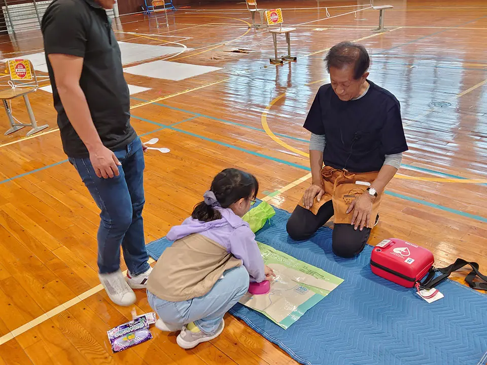 あまり食べたことのないアルファ米非常食の試食会や消火器体験も行いました。実際に触れてみることで、より防災意識を高めていただけた様子でした。