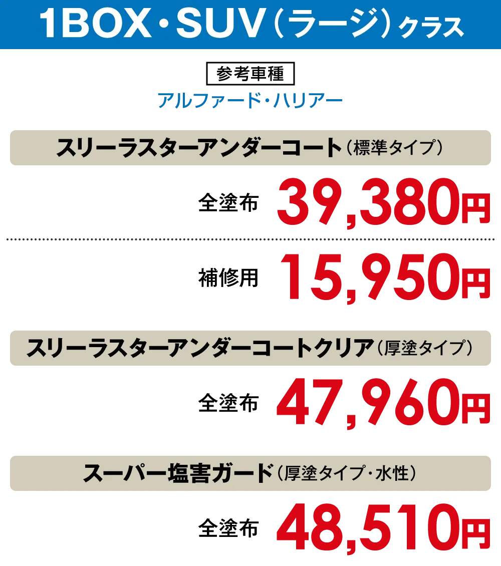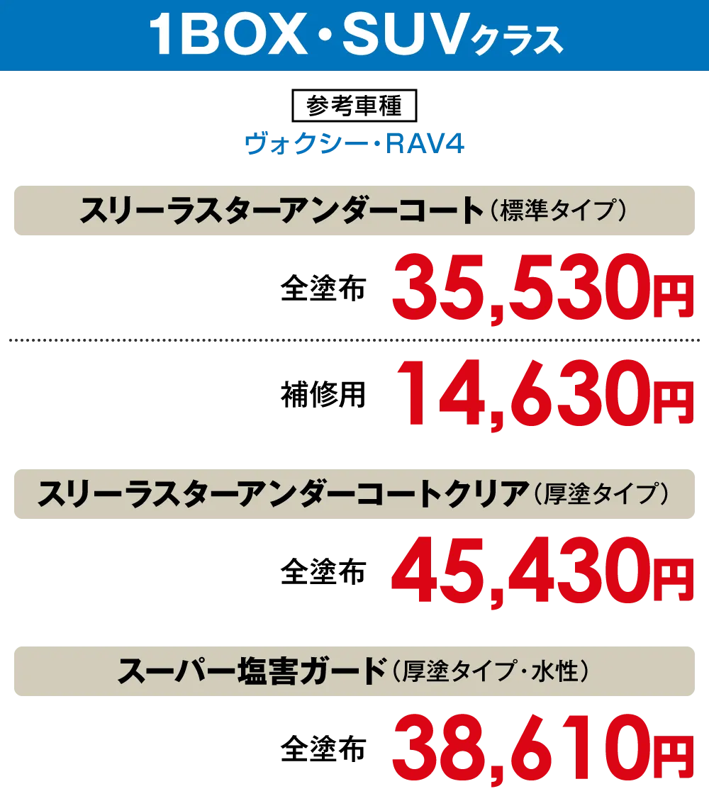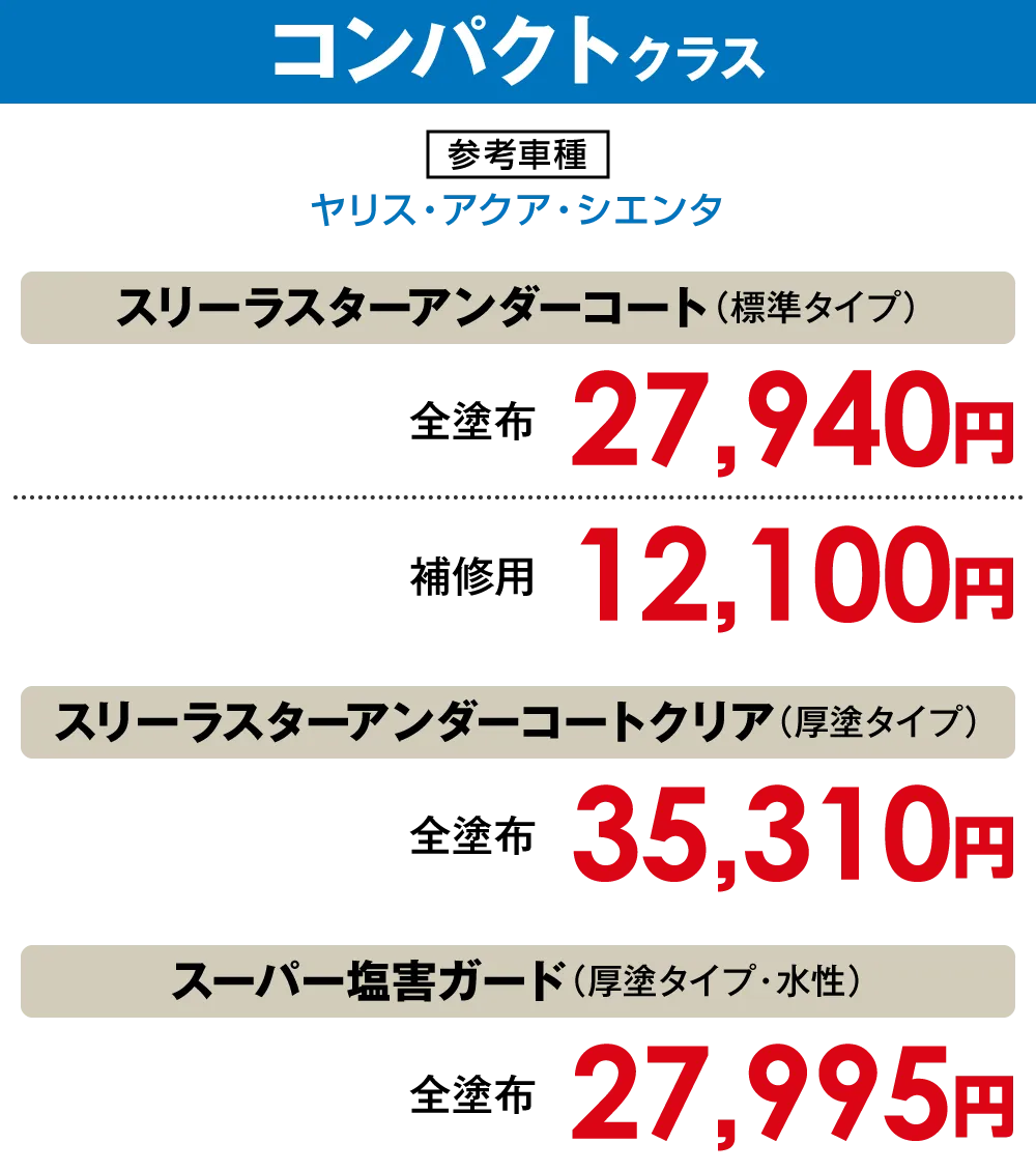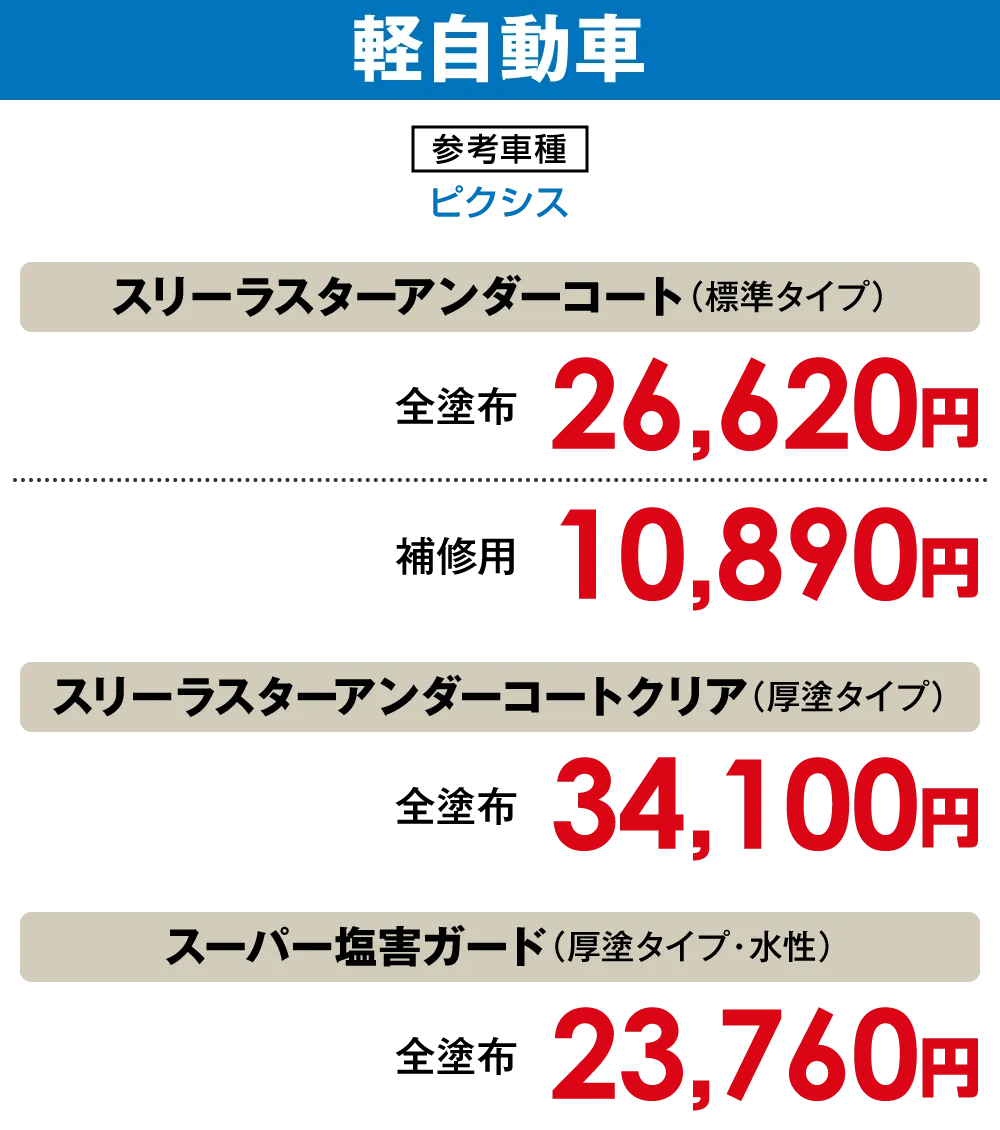 ■料金には下廻り洗浄代と材料代を含んでいます。